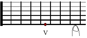 6-tą strunę (najgrubszą) na piątym progu i pobudzić ją do drgań.