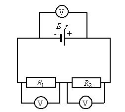 Jeśli napięcie na źródle oznaczymy UE , a napięcia na opornikach odpowiednio U1  i U2 , to prawdziwy będzie związek:
