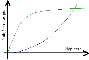 Rysunek - przykład charakterystyk materiałów NIE spełniających prawa Ohma.