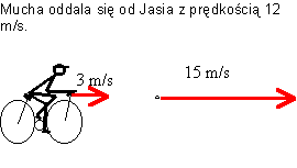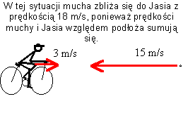 W przypadku gdy mucha zbliża się do Jasia prędkość względna wyniesie 18 m/s: