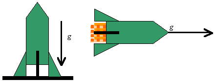 Na powyższym rysunku - osoby znajdujące się w obu rakietach identycznie będą odczuwały siłę dociskającą je do podłogi rakiety. Przy czym