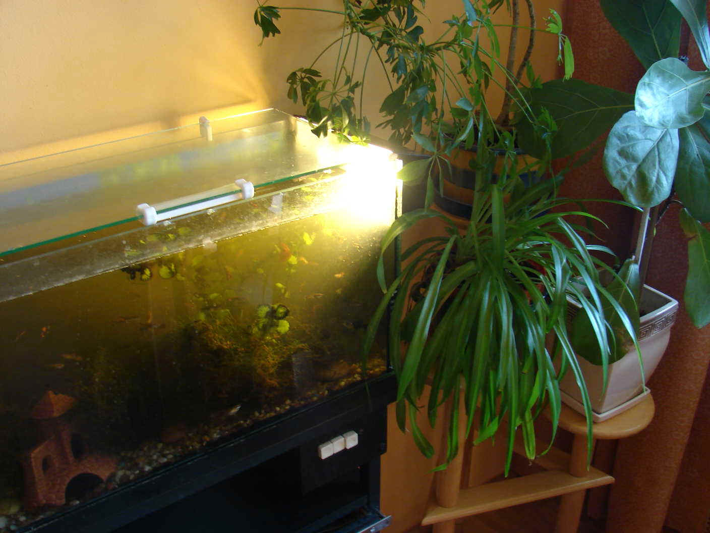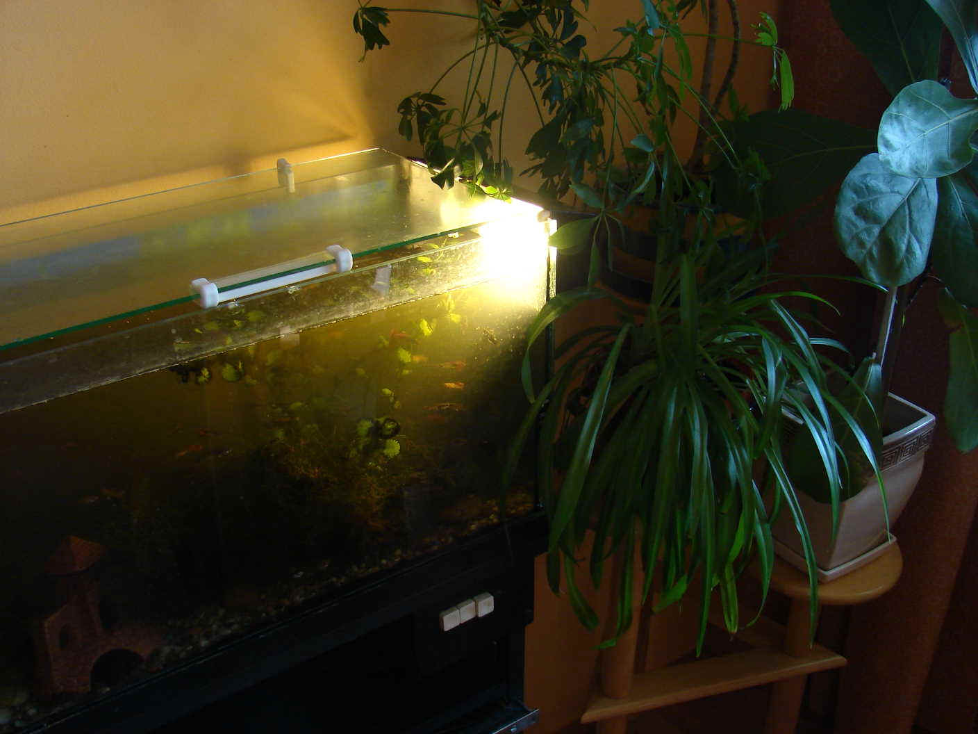 Posiadacze aparatów z funkcją "bracketingu" mogą nieco naprawić ów negatywny efekt i zarejestrować kontrasty lepiej. Bracketing polega na tym, że dla tego samego ujęcia, robione są szybko po sobie dwa zdjęcia - jedno dostosowane parametrami ekspozycji (np. migawka, korekcja EV) do elementów jasnych, a drugie do ciemnych. Później można (zwykle w programie graficznym) połączyć te dwa zdjęcia w jedno - zachowując dobre fragmenty z każdego zdjęcia, w miejscach gdzie na drugim zdjęciu wyszła tylko jednolita plama. Jednak tego rodzaju postępowanie nie jest wygodne - wymaga dodatkowej obróbki w programie graficznym, a poza tym nie wszystkie aparaty bracketingiem dysponują. Bracketing - przykładPoniżej przedstawiam przykład ujęcia wykonanego z użyciem bracketingu. Aparat zrobił w serii 3 zdjęcia - jedno optymalizowane na obszary ciemne (korekcja ekspozycji EV =+0,7) jedno "normalne" (korekcja EV = 0) i jedno dobrze oddające jasności (korekcja ekspozycji EV =-1). Widać, ze zawsze mamy "coś za coś" - na zdjęciu, gdzie liście rośliny w cieniach są wyraźne (lewe zdjęcie) światło lampy jest rozlane. Z kolei tam gdzie lampa jest bardziej skupiona, nie razi, tam szczegóły liści zatracają się w cieniach (prawe zdjęcie). W środku mamy przypadek pośredni, który co prawda ukazuje najwięcej szczegółów, jednak w cieniach i światłach oddał szczegóły gorzej, niż któreś z pobocznych ujęć. Teraz najprostszym rozwiązaniem (bez specjalnej dodatkowej roboty) jest wybranie tego ujęcia, które uważamy za najlepsze (np. środkowego). Można też, sprawą programu graficznego (np. Adobe PhotoShop) te ujęcia scalić w jedno, co pozwoli połączyć najlepsze cechy każdego z ujęć. Ciekawe funkcje nowych aparatówWarto tu jeszcze wspomnieć o specjalnych funkcjach w niektórych najnowszych aparatach, które posiadają funkcje o efektach podobnych do opisanego bracketingu. Np. nowa lustrzanka Sony α 700 posiada zaawansowną opcję o nazwie DRO (Dynamic Range Optimization). Efektem jej działania jest znaczna poprawa jakości zdjęć w cieniach i jasnych obszarach. Podobne efekty daje funkcja w aparatach Nikona - nazywana jest tam "Active D-lighting". Stabilna ręka - to podstawaPodczas fotografowania trzeba starać się trzymać aparat jak najstabilniej, unikając drżenia ręki. w gorszych warunkach oświetlenia można pomóc sobie oparciem ręki na jakimś przedmiocie, elemencie budowli itp. Dobrze też robi wstrzymanie oddechu podczas wyzwalania migawki, albo oparcie łokci o brzuch. Stabilną rękę można w dużym stopniu wyćwiczyć.