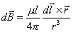 dB – nieskończenie mały przyczynek indukcji magnetycznej pochodzący od fragmentu przewodnika – w układzie SI w teslach T = N/Am = kg/(As2)