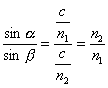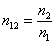 bezwzględnymi współczynnikami załamania w obu ośrodkach.
