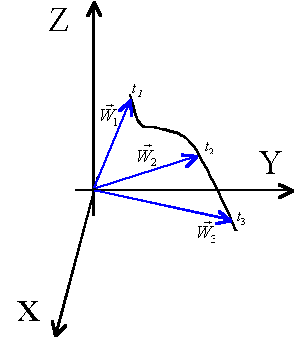 Na rysunku powyżej przedstawione są (na niebiesko) trzy przykładowe wektory położenia W1, W2, W3. |