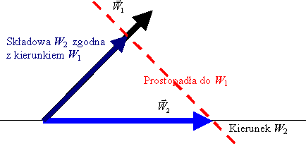 Przykład zastosowanie iloczynu skalarnego wektorów jest podany w dziale Energia przy omawianiu pracy.