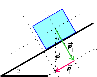 Kąt ostry tego trójkąta jest równy kątowi nachylenia równi (kąty o ramionach prostopadłych są równe) Teraz będziemy mogli siły P+ i P|| wyrazić przez daną wartość ogólną siły ciężkości P. Korzystając z definicji funkcji trygonometrycznych sinus i kosinus można napisać związek pomiędzy siłą ciężkości i jej składową równoległą do równi: stąd: P|| =P ∙ sin α Teraz powiążemy wartość składowej prostopadłej z siłą ciężkości P. stąd: