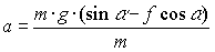 Wzór końcowy na przyspieszenie klockaPo wyrażeniu składowych siły ciężkości przez funkcje trygonometryczne kąta nachylenia równi otrzymaliśmy wzór gotowy do podstawienia.