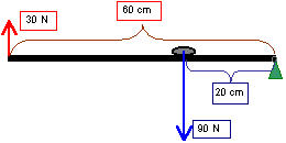 Przyk³ad zastosowania d¼wigni jednostronnejPrzyk³ad zastosowania d¼wigni dwustronnej za pomoc± si³y 30 N mo¿na podnie¶æ ciê¿ar 90 N.