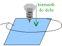 Oczywiście, jeśli zaczniemy teraz kręcić płaszczyzną w odwrotną stronę, to kierunek zmieni się na przeciwny. Oznacza to, że dla obracania płaszczyzną zgodnie z ruchem wskazówek zegara, wkręcająca się śruba posuwałaby się do dołu.
