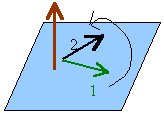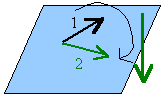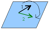 Kierunek kręcenia płaszczyzną przez wektory ustalamy jako od wektora pierwszego (1) do drugiego (2).